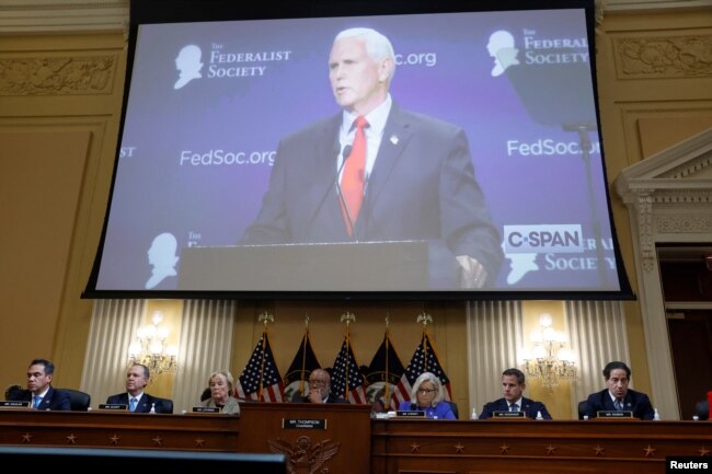 Eski bir Trump yönetimi yetkilisinin ifadesini gündeme getiren komisyonun Cumhuriyetçi başkan yardımcısı Liz Cheney, Trump’ın 6 Ocak’ta destekçilerinin Kongre dışında toplanarak “Mike Pence’i asın” şeklinde slogan attıkları konusunda bilgilendirildiğinde, eski başkan Trump’ın “Belki de destekçilerimizin fikri doğrudur. Mike Pence bunu hak ediyor” dediğini söyledi.