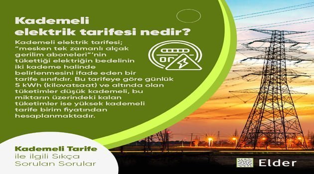 Türkiye genelinde hizmet veren 21 elektrik dağıtım şirketinin çatı kuruluşu olan Elektrik Dağıtım Hizmetleri Derneği (Elder); 1 Ocak 2022 tarihi itibarıyla ‘mesken tek zamanlı alçak gerilim abone grupları’ için başlatılan Kademeli Elektrik Tarifesi ile ilgili tüketicilerden çok fazla soru gelmesi üzerine ‘Sıkça Sorulan Sorular’ı bir başlık altında toplayarak muhtemel soruları  yanıtladı.